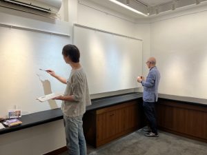 搬出後、穴の開いた壁を埋めてくださる先生方。